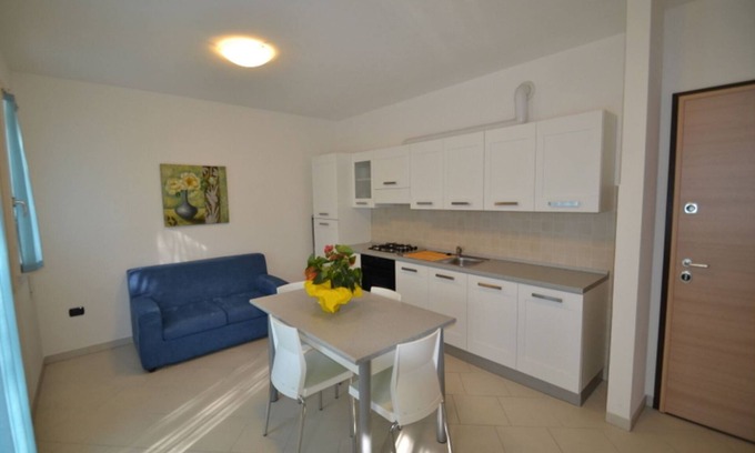 Newly built apartments for up to 5 guests, 500m from the beach and 50m from the center (Viale dei Pini). They feature a bedroom with a double bed, a second bedroom with a bunk bed, a bathroom with shower, a living room with a kitchenette and a single sofa bed, satellite TV, free Wi-Fi, mosquito nets, washing machine, A/C, and 1 parking space. Located in Via dei Salici, surrounded by greenery, ideal for a relaxing vacation.