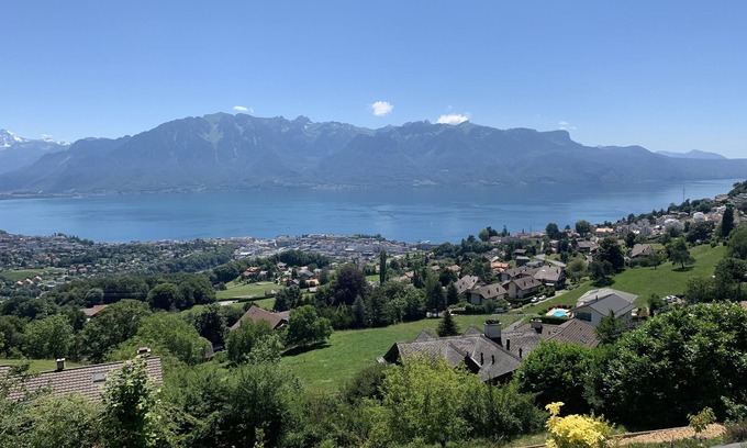 Welcome to our modern flat in Jongny, close to Montreux and beautiful Lake Geneva. Enjoy panoramic views of the mountains and lake from the comfort of our flat. Whether you are a family or a Group, our flat can accommodate up to 8 people and offers the following facilities: