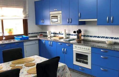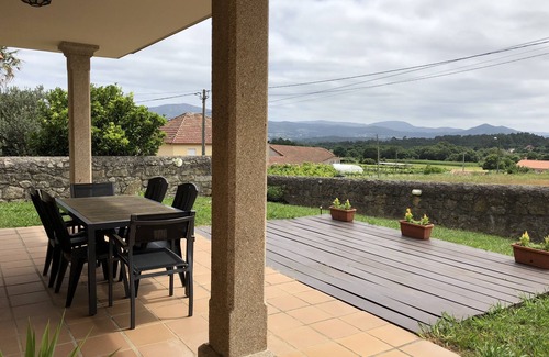 The villa is built in traditional Galician stone style and is fully equipped: the very spacious modern kitchen is equipped with all modern appliances and has a dining area; a spacious living room overlooking the garden, terrace and Portugal; 2 double bedrooms, one with an ensuite bathroom) and 2 single bedrooms with a second bathroom.
