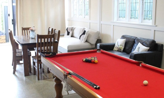 Inside, you'll find a fully equipped kitchen with induction hot plate and electric oven ready for your culinary adventures. A spacious living area with a large TV for your entertainment, and a pool table for some friendly competition. Step outside to enjoy our sparkling pool, perfect for cooling off on warm days.