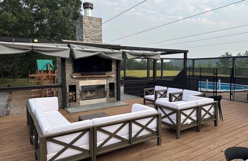 Bring the whole family to this great place with lots of room for fun. Large, completely renovated cabin in the Homochitto National Forest. On site amenities include huge 2,000 sq ft deck, indoor and outdoor fireplaces, separate fire pit, pool, hot tub, playground, and ~120 acres with miles of trails. Nearby things to do include horseback riding, hiking in the Homochitto National Forest, and boating in the Homochitto reservoir.
