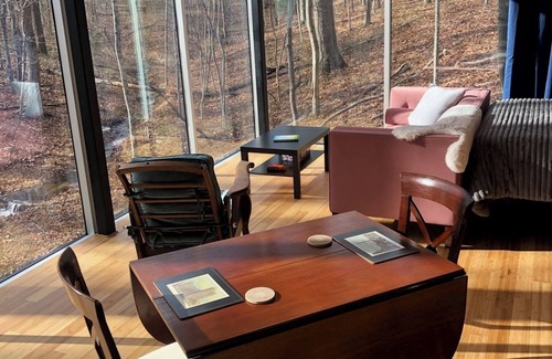 Modern Glass Retreat in Fort Valley with WiFi, AC, EV charger is located in Fort Valley. Modern Glass Retreat in Fort Valley with WiFi, AC, EV charger provides accommodation, featuring Laundry, Wellness Facilities, Kitchen, among other amenities. This Cabin features Laundry, Wellness Facilities, Kitchen, to make your stay a comfortable one.