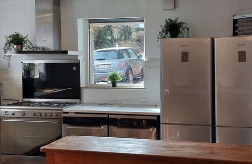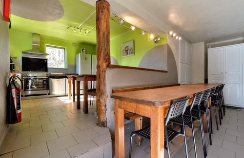 Children will love the garden with a slide and play equipment, while adults can unwind with a game of table football or enjoy a meal on the furnished terrace with barbecue. The home includes two fully equipped kitchens, multiple bathrooms, and a spacious dining area, ideal for group meals and celebrations.