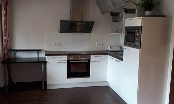 Modern, high-quality furnished 2-room apartment with balcony on the Moselle! is located in Nittel. Modern, high-quality furnished 2-room apartment with balcony on the Moselle! provides accommodation, featuring Kitchen, Laundry, TV, among other amenities. This Apartment features Kitchen, Laundry, TV, to make your stay a comfortable one.