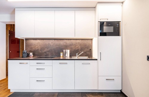 The Chalet Ortles flat is located in San Valentino on the Haide (San Valentino alla Muta) and offers a beautiful view of the mountains. The modern and elegant accommodation consists of a living/dining room with a sofa bed for two people and a well-equipped kitchen with dishwasher, 1 bedroom with double bed and a sofa bed for 1 person and 1 bathroom, thus offering space for 5 people. The equipment also includes Wi-Fi, a satellite and cable TV, a baby cot and a high chair. The chalet also has a shared laundry, bike and ski room with heated boots, washing machine and dryer for all guests to use. Within a 6-minute walk you will find 2 restaurants, a bakery, a café and a bar. A mini market is a 5-minute walk away (350 m). You can reach the St. Valentin-Haideralm ski lift in just a 2-minute walk (160 m). Lake Haider is also a 10-minute walk (850 m) and Lake Reschen is a 12-minute walk (900 m) from the accommodation.