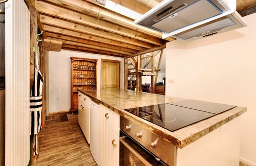 The recreation room features table football, billiards, and a pellet stove for indoor fun. One ground-floor bedroom with en-suite is adapted for guests with reduced mobility. The fully equipped kitchen includes multiple ovens, dishwashers, and fridges. Free WiFi, washing machine, and parking are also available.