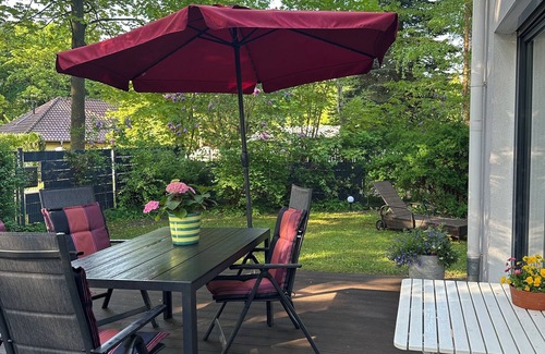Modern holiday home in the Berlin countryside in Wandlitz near Berlin, 10 minutes walk to the lido Wandlitz. Ideal for cycling and hiking and walking in nature. Relaxing hours or exciting city sightseeing in Berlin with shopping tour and cultural program. Varied holidays for the whole family. New modern equipment with library, CD and DVD collection. Washing machine and children's toys available.