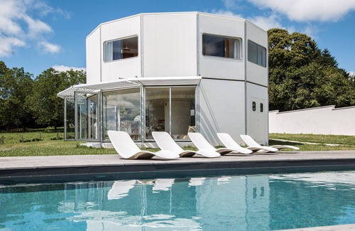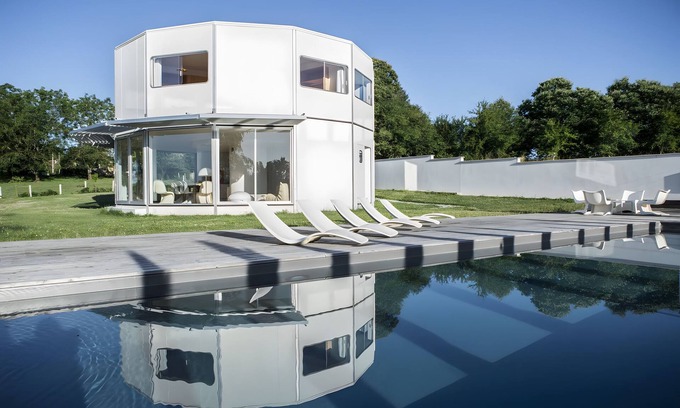 This former service station, designed in 1969 by Jean Prouvé for Total, has been given a new lease of life as an exceptional gîte, nestled in the lush countryside of the Périgord region.