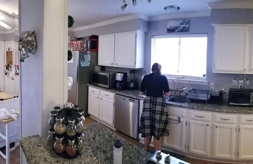 PET FRIENDLY ✓ KING BED ✓ COFFEE BAR ✓ ENTIRE HOUSE ✓ Mins from NRG Stadium, Downtown Houston, or Galveston, all highway. Featured on TLC television show! 5 mins walk from Baybrook Mall, restaurants, grocery, and dining, nightlife, family-friendly activities, multiple gyms and the beach. You’ll love our house because of the comfy beds, the lighting, the kitchen, laundryroom, patios, and backyard! Good for couples, solo adventurers, business travelers, families, big groups, and Pets!