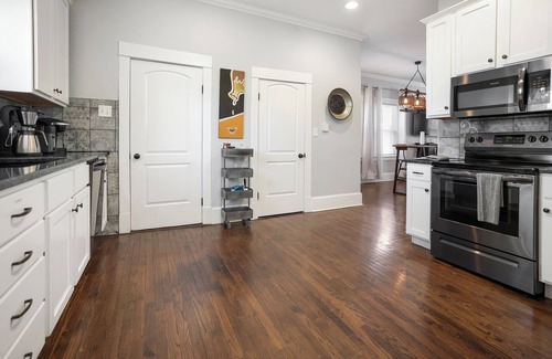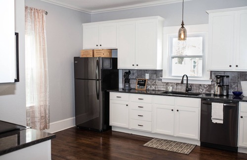 This little two bedroom house is perfect for your visit to Kansas City. The decor is modern, and the house interior is brand new. You can see the Kansas City skyline from the front porch and you will feel like you are visiting Kansas City the right way. Strawberry Hill is KC's hottest new neighborhood.