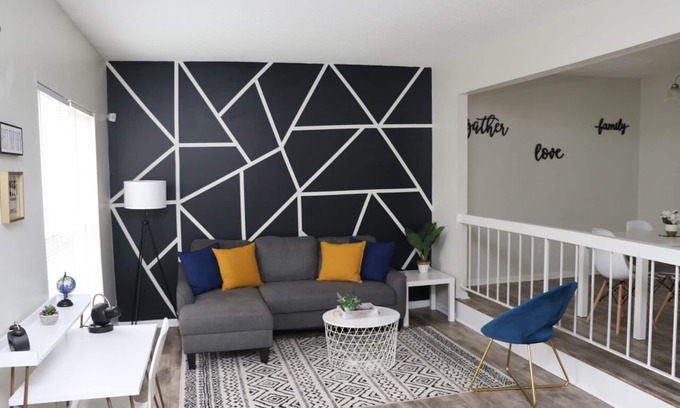 This 3 bedroom and 1.5 bath townhouse has a fully equipped kitchen, Keurig, dining area, 65-inch Roku TV in the living room, + 2 TVs (bedrooms), high-speed wireless internet, fenced backyard with patio table set, makeup desk in the master bedroom, computer desk in the living room, 4 comfortable beds (1 queen, 2 double fulls, 1 sofa bed), washer/dryer, & SELF CHEK-IN!