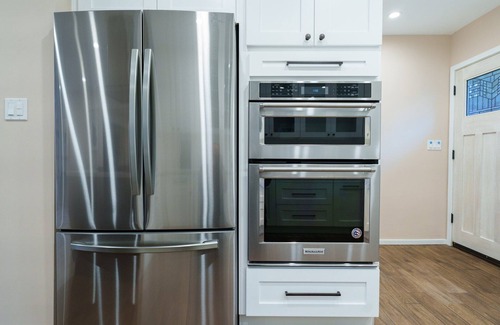 With 3 bedrooms, 2 bathrooms, a dining area, a living room, a porch, front and back yards, and nearby hiking trails, this home has it all for the family to have a quiet, yet entertaining time. The cozy living room has a brick fireplace, and a large smart TV with Netflix. The living area also comes with a piano and a record player, in case you're feeling nostalgic. There's a dedicated workspace in the hallway for two with adjustable desks. The fully equipped kitchen will allow you to make the most unreal recipes come to life. Enjoy your fantastic cooking on the dining table for 8, or have dinner on the porch to dine alfresco. The master bedroom comes with a king-size bed and en-suite bathroom. Air mattress is available upon request. Each room has a smart TV with cable service and Netflix to enjoy your favorite shows. Each bathroom has all the essentials and a hair dryer. Three of the bedrooms have desks and chairs perfect for working from home. The house has beautiful fully fenced front and back yards for the kids and pets to play along. The garage can accommodate one car, and one more car can be parked on the driveway, and there's lots of street parking available.