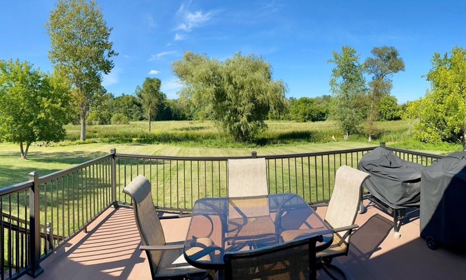 Off of the dining room is a deck complete with gas and charcoal BBQs. In the "good weather" months a 4 top table and umbrella are also available for outdoor seating. Enjoy your morning coffee or evening beverages on the deck while watching the wildlife on Trout Creek that borders the spacious backyard. The creek flows into the Peshtigo River less than 1/4 mile away!