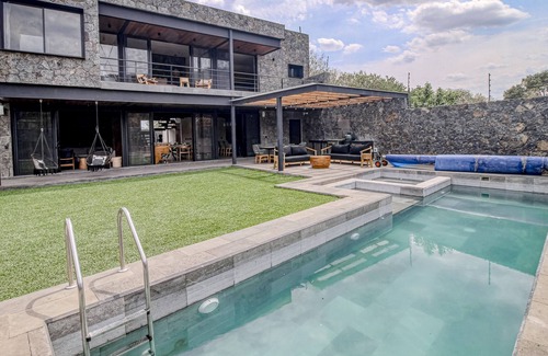 Modern home with a private pool, hot tub, outdoor kitchen, & mountain views | House in Mexico City