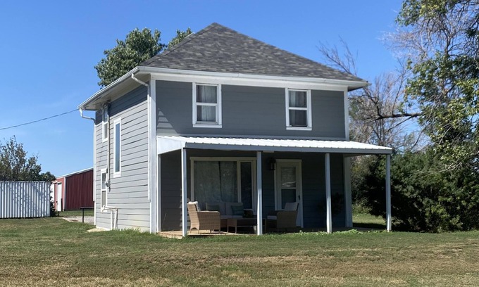 • Outdoor Oasis: Sip coffee or dine al fresco on the covered front deck, complete with stylish patio furniture and scenic prairie views.