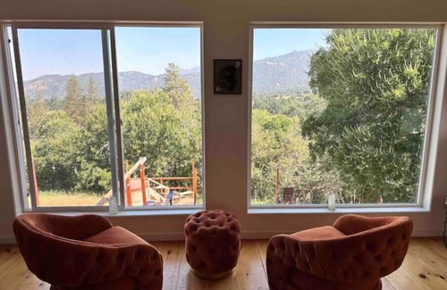 Angels Hills property is truly one of its kind. It is a gorgeous, secluded 5-acre property on top of a hill with spectacular 360° views of the surrounding Sequoia National Forest mountains with complete privacy. It’s not a common cabin you will find in the area it’s a loft-style high-ceiling house with huge windows, 3 bedrooms, 2 bathrooms Playground, Meditation Dome, Hot Tub & Sauna. A perfect retreat or family getaway destination. Check out our Inst page @angels_hills