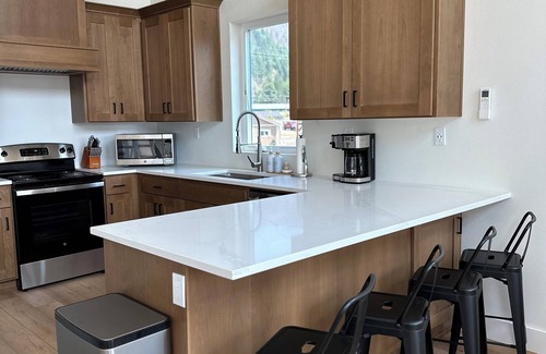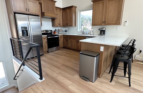 Perfect for families or groups, the home is just steps from the local market, marina, and scenic hiking trails. In winter, hit the slopes at Hoodoo Ski Resort, only a 45-minute drive away.