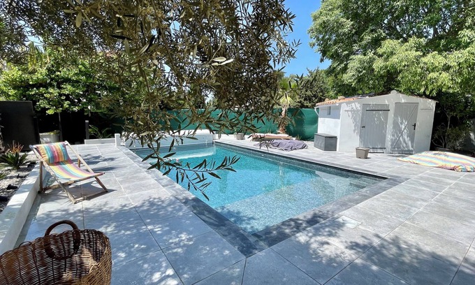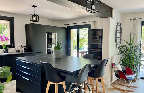 Enjoy this Mediterranean villa for its large rooms, comfort, beautiful pool. Very quiet, it is a paradise in the heart of the town.