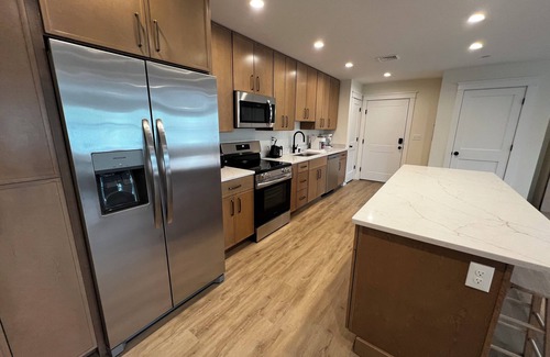 - Luxury New 1BR 950 sq ft apartment. Sleeps 4. Stocked Kitchen, 2 Tvs, Parking.