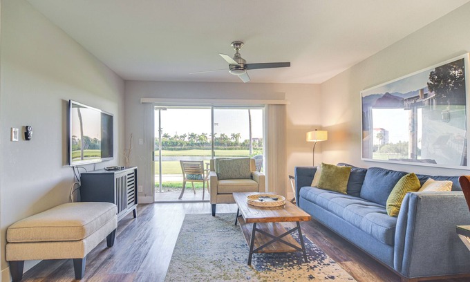 CONDO FEATURES: Open living area, flat-screen cable TVs, dining table, walk-out patio, outdoor furniture