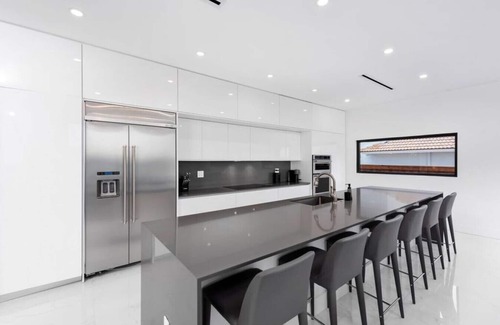 Escape to the Modern Lakefront Villa w/Pool, Jacuzzi and Gym, an exquisite wedding accommodation that promises a magical experience for you and your guests. Nestled on a sprawling 24,600 square foot lot in the heart of Glenvar Heights, Miami, this stunning contemporary residence features breathtaking views over the serene waters, providing a picturesque backdrop for your special day. With its majestic soaring ceilings and abundant natural light from floor-to-ceiling windows, this villa radiates romance and elegance.