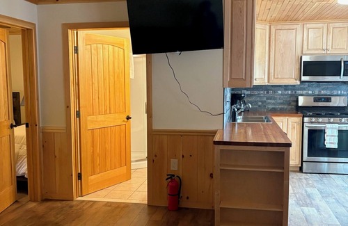 The Modern Lakeview Escape is a newly renovated 2-bedroom, 1-bath apartment with stunning views of Black Lake. Perfect for up to 4 guests, it has a sleek kitchen, cozy bedrooms, and a spacious living area. Relax on the dock, or rent pontoons, kayaks, paddle boats, and lawn games from the camp store. With a pool, arcade, and trails, this stylish lakeside retreat has everything you need for a relaxing getaway!