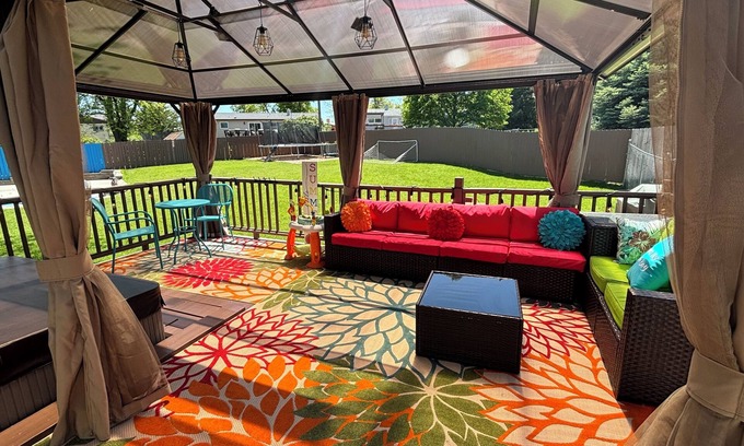 - Family-Friendly Amenities: The property features a yard with play equipment, trampolines, and a basketball half court, making it a great choice for families with children attending the wedding.