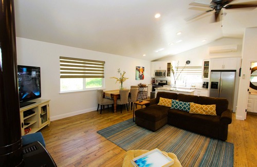 Nestled on a 4 acre hilltop in Placerville, Ca. We are at a 2860 ft elevation. Approximately 10/12 miles from downtown Placerville. This is a stand-alone home, about 50 yards away from the main house which allows you total privacy. Relax and enjoy our newly remodeled one Bedroom one Bath. 1,100 sq. ft. home built in 2006 with Heat & A/C. Bedroom offers king size bed. New Smart 70" TV.