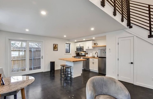 Enjoy a stylish experience at this centrally-located one bedroom apartment. Covered parking, washer/dryer in unit, spacious living, private outdoor patio, and completely brand new! Walk to all that downtown Augusta has to offer, close walking distance to parks and the grocery store. King sized bed and a comfy couch. Bring an air mattress for extra guests.