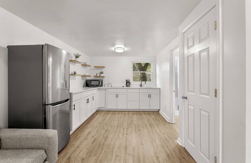 Nestled amongst the trees is this modern carriage house loft that has everything you need for a relaxing stay only 8 mins to hospitals and the trendy downtown Decatur.
