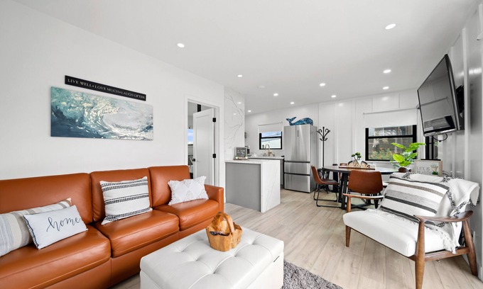Enjoy your stay in beautiful Carlsbad Village, only steps away from the sand! Just a short walk with easy access to the relaxing beach, amazing food and great shopping. This modern and stylish 1 bedroom, 1 bathroom property is the perfect quiet location which includes the fastest internet 1 GIG WIFI and smart tv in the bedroom and living room. Free designated parking for 1 car in the driveway. Tesla charger available during non peak hours (11pm-5am)