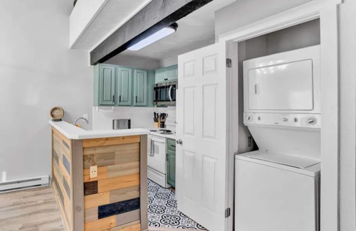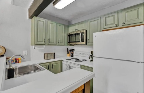You enter into the double height foyer which leads you to the open living area that includes a wood-burning fireplace. Within this space you can find a couch that pulls out into a bed along with 2 club chairs. Adjacent to the living area is the fully equipped kitchen and dining room. There is a sliding glass door that leads out onto the patio that overlooks the pond . Within the unit there is a washer/dryer. Off of the foyer, there is a completely renovated full bathroom with a bathtub. Next to the bathroom is the main bedroom with a queen size bed, wall mounted desk and ample closet space for all of your belongings. Making your way upstairs you will find the open loft. Up here there is a full size bed with a twin size trundle that pulls out from underneath. There is also a half bathroom on this level and another closet.