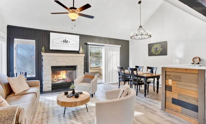 Located within the charming Snow Ridge Village at the base of Jack Frost Mountain, this modern yet cozy loft that overlooks a lovely pond is the exact getaway you've been searching for. Whether you're planning a romantic weekend away or traveling with some family/friends, The Pocono Loft will have you feeling right at home! Use the ski-in/ski-out trail located right across the street then warm up by the wood burning fireplace with a cup of hot chocolate after a day on the mountain.