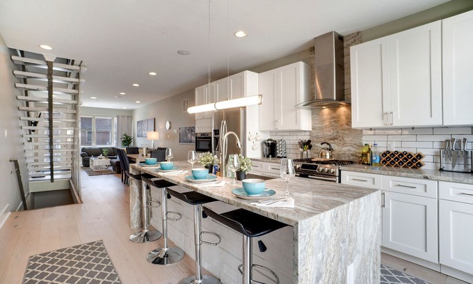 Just a few of the words that describe this Newly-Constructed Townhome in Point Breeze. This 4bd/3bth house can comfortably sleep 3-16 guests w/ 4 queen beds, 3 double beds, a sofa bed & more.