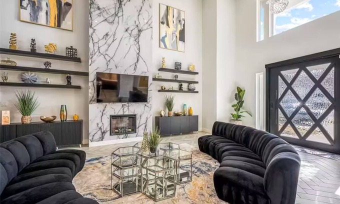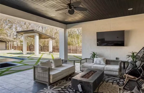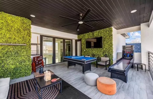Experience pure luxury at this one-of-a-kind modern retreat, perfect for upscale getaways, family trips, or group vacations. This spacious designer home features a resort-style backyard complete with a private pool, soothing hot tub, and fully equipped outdoor kitchen.