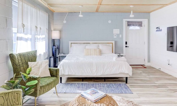 Immerse yourself in a picturesque oasis at the heart of downtown Memphis's Victorian Village. Experience an enchanting stay in a newly renovated studio with modern decor, positioned in front of century-old villas.