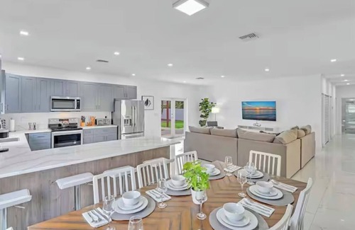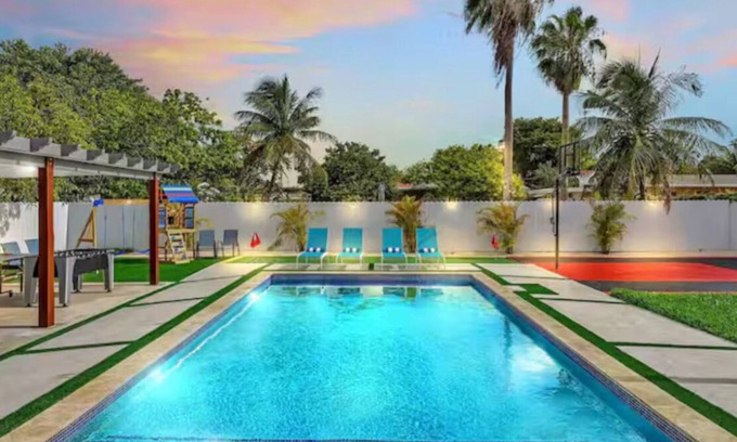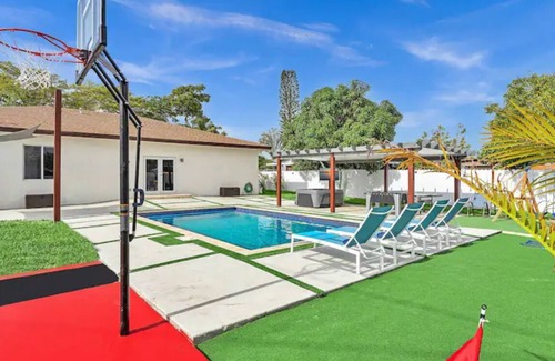 Modern Luxe Villa with Heated Pool & Resort Vibes is located in Cutler Bay. Modern Luxe Villa with Heated Pool & Resort Vibes provides accommodation, featuring Parking, Bedding/Linens, Hot Tub, among other amenities. This House features Parking, Bedding/Linens, Hot Tub, to make your stay a comfortable one.