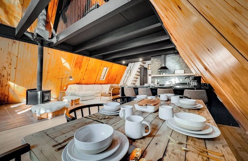 Modern Luxurious A-Frame - Playground is located in Strawberry. Modern Luxurious A-Frame - Playground provides accommodation, featuring Fireplace/Heating, Barbecue/Outdoor Cooking, Child Friendly, among other amenities. This Cabin features Fireplace/Heating, Barbecue/Outdoor Cooking, Child Friendly, to make your stay a comfortable one.