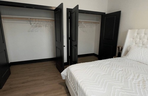 Conveniently located, this newly built apartment, offers a seamless blend of comfort and style. With a prime spot, you're within a 5-minute walk to buses leading directly to NYC and 5 min drive to the Ferry which takes you to NY in 5 minutes! 1 king bed+ 1 queen air mattress + 1 twin sofabed. Step outside, and you'll find yourself surrounded by convenience – from supermarkets and liquor stores right in front of the apt to delis, a hair salon, and a barbershop around the corner.