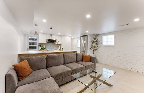 Welcome to our brand new lower unit apartment! This home boasts two bedrooms - one with a queen bed and the other with a full bed - and a modular couch that can be set up as a full size bed - along with a modern bathroom with 2 massage showerheads. Enjoy modern organic decor, along with 3 smart TVs and high-speed WIFI and a dedicated workspace.