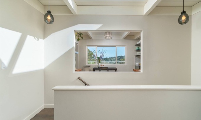 Located in Mill Valley, overlooking gorgeous homestead valley and the San Francisco Bay, this modern luxury home boasts 4 bedrooms, including a large master bedroom and bathroom, two rooms with full-sized beds, a sofa bed guest room, and upper living space with family and formal living areas, wrap around decks with breathtaking retreat-like views and a gourmet kitchen. Situated on a quiet street just minutes from downtown Mill Valley, the Golden Gate Bridge, and within walking distance to a bevy of hikes, the home feels like a peaceful getaway from it all while still being close to the thriving community, restaurants and shops of Mill Valley and wider Marin. It's a wonderful place to call home base while traveling.