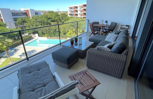 Modern, luxury T2 apartment is located in Albardeira. Modern, luxury T2 apartment provides accommodation, featuring Wellness Facilities, Pool, TV, among other amenities. This Apartment features Wellness Facilities, Pool, TV, to make your stay a comfortable one.