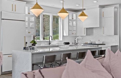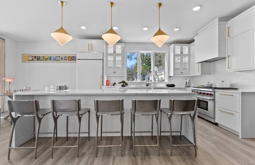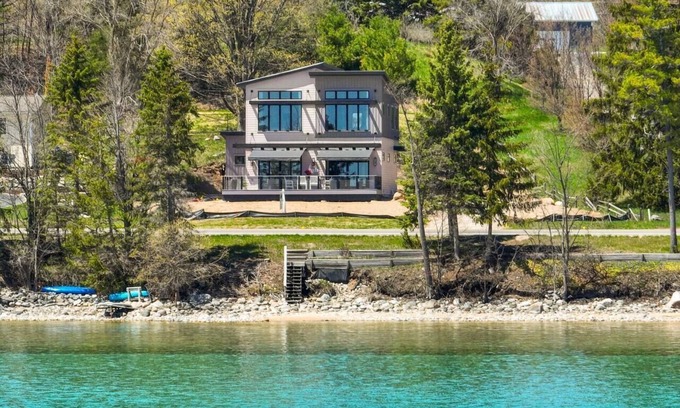 Welcome to your dream getaway on beautiful Old Mission Peninsula! This brand-new, tastefully designed modern home offers 101’ of private East Bay frontage, a private dock, and breathtaking water views from nearly every room. Tucked in the heart of Traverse City’s wine country and just 6 minutes to downtown, this is the perfect Northern Michigan escape. Step inside to find designer details at every turn! From the grand piano in the entryway to curated artwork and luxurious furnishings. The open-concept living space features a cozy modern fireplace, Samsung flat screen TV, remote-controlled blackout shades, and a walk-out deck perfect for sipping coffee or wine while soaking in stunning bay views. The fully stocked kitchen is a chef’s dream, complete with high-end appliances, a granite waterfall island with seating for five, and all the essentials for baking, cooking, and entertaining. A beautiful dining area overlooks the water, setting the scene for unforgettable meals with family and friends. Upstairs, all three bedrooms feature comfy king beds, plush bedding, private full bathrooms, flat-screen TVs, plenty of closet space, and blackout shades. Two of the bedrooms offer stunning water views to wake up to each morning Outside, enjoy the landscaped yard, bonfires by the bay, or launch your kayak right from the private dock. Plus, with coded entry locks, Ring security, a 2-car garage, and all the comforts of home (Electrolux washer/dryer, Breville coffee maker, Vitamix, Bluetooth speaker, and more), your stay is designed for relaxation and ease. Whether you’re touring local wineries, exploring downtown TC, or simply unwinding by the water, this stylish, modern oasis offers the best of Northern Michigan living. We will provide a code prior to check in