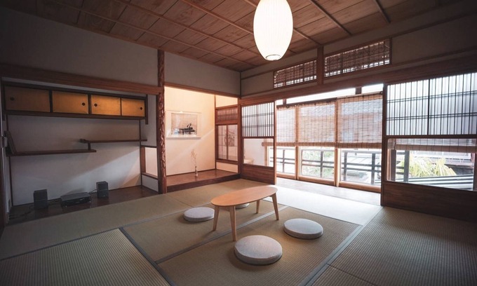 This Kyo-machiya (traditional Kyoto house) styled home is big enough to comfortably accommodate nine people without feeling cramped. The two-story house features an additional mini-kitchen on the second floor to keep everyone happy. Spend a little time here, and you’ll easily fall in love with the house’s quirky personality and clear connection to the area’s heritage, and don’t forget to put aside a few hours to soak in the stylishly modern bath, which comes complete with private garden views.