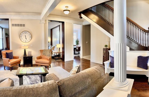 Walk in and be wowed by spacious rooms and impressive 10-foot ceilings that make everything feel grand and welcoming. Each of the five stylish bedrooms is a cozy hideaway, combining classic charm with all the modern perks to make sure everyone feels right at home. Whether you're catching up with friends or sneaking in some "me time," you'll fall in love with the unique character oozing from every nook and cranny.