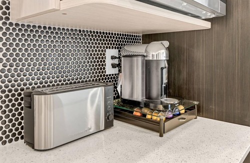 Kitchen Includes: Blender, Expresso machine & pods, Toaster, Crock Pot, handheld electric mixer, pots &pans, cooking utensils, mixing bowls, Tupperware, knife set, cutting board, can opener, corkscrew,