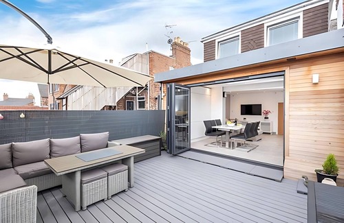 - Bi-fold doors open onto the private rooftop decked area. Here you can enjoy use of luxurious garden furniture on a sunny day.