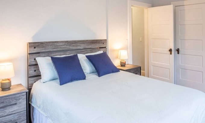 This elegant, bright one bedroom suite is located on Grand Street in historic Newburgh. The building is only 3 blocks (1/2 mile) from the Hudson River, where you may enjoy multiple restaurants and entertainment venues! Only 1 mile away board the Ferry to Beacon (one of America's coolest small towns) train station to board the Metronorth train to New York City (one of America's coolest large cities). This beautiful, historic building has been completely renovated and features new plumbing, energy efficient lighting, new fixtures, flooring and high-end furnishings. The bedroom has a queen sized bed and an adjacent outdoor deck for fresh mountain air! Your stay includes a kitchen with supplies, a full bathroom, a spacious dining room which opens into the living room. The remote employee can enjoy the office complete with high speed wi-fi access. An additional queen sleeper sofa resides in the living room. You also have an on site laundry room. Street parking is available with attention to the street sign regulations. Luckily, you have a reserved parking spot on the premises! The building may be accessed through your own front or rear entrances. Take a short walk or drive to the Hudson Riverfront to dine or explore nearby towns for museums, State parks, outlet shopping, antiquing, and so much more the Hudson Valley has to offer ...... or stay in and enjoy the quiet and quaint backyard. Welcome!
