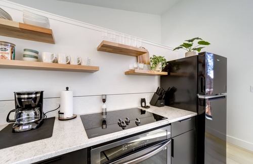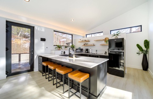 They say nature heals all, and at this contemporary retreat, you'll have easy access to roam the awe-inspiring Pisgah National Forest. Hike, leaf-peep, and waterfall-chase by day, and settle into the peaceful confines of this 2-bedroom, 1-bath vacation rental by night. Connect with loved ones over s'mores around the fire pit, drinks on the deck, or a friendly game of cornhole — all complemented by scenic mountain views. Not pictured: glowing sunsets, star-filled skies, and long-lasting memories.
