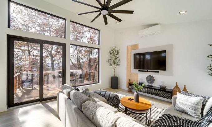 HOME FEATURES: Smart TV, ceiling fans, large windows w/ nature views, contemporary decor